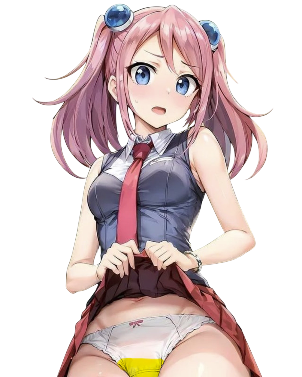 Hentai Eye – 1girl belly button blue eyes dark pink hair hiiragi yuzu lifting skirt open