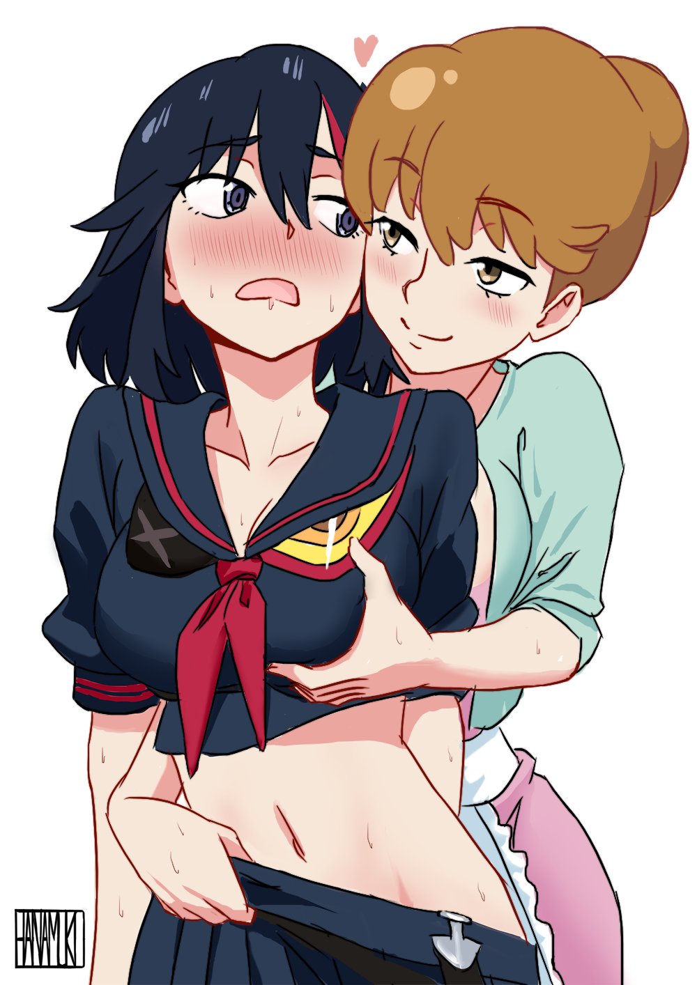 Hentai Eye – 2 girls age difference big breasts black hair black serafuku black skirt
