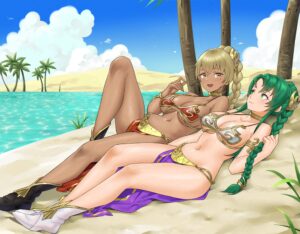 Hentai Eye – 2 girls absurd res alluring alternate hairstyle beach belly dancer belly