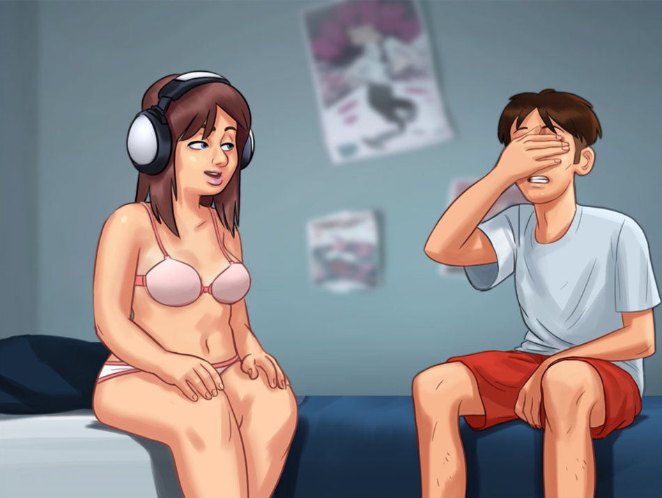 Hentai Eye – 1boy 1girl 1girls 2d bed bed sheet bedroom blue eyes bottomwear bra brown