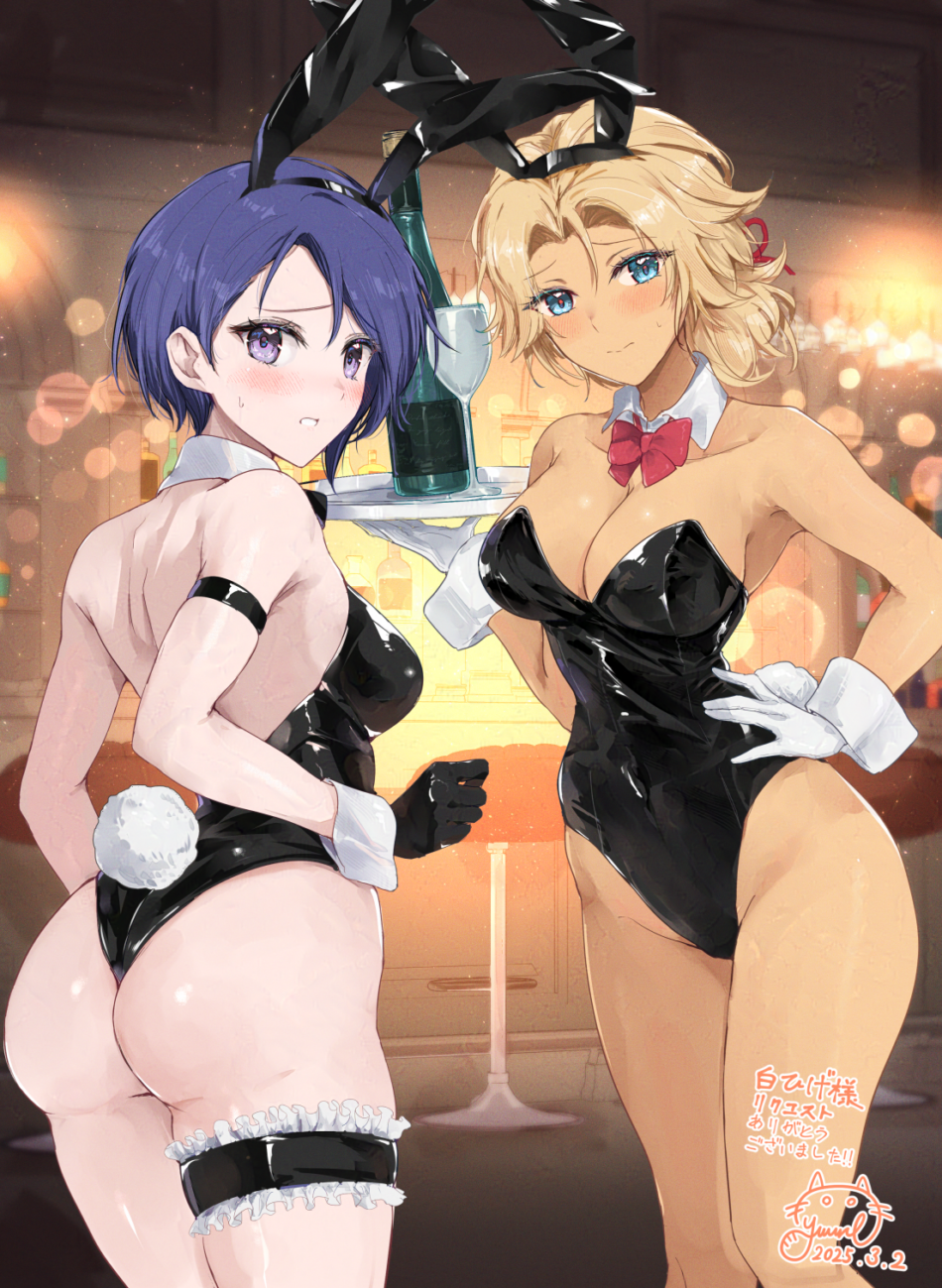 Hentai Eye – 2 girls alluring alternate costume animal ears ass bare shoulders black bow