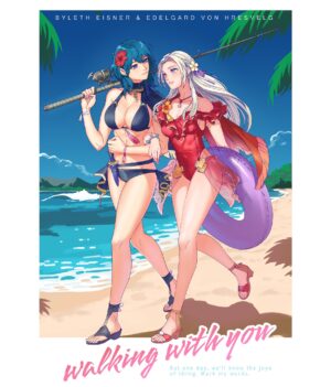 Hentai Eye – 2 girls alluring athletic female bare legs beach big breasts bikini black