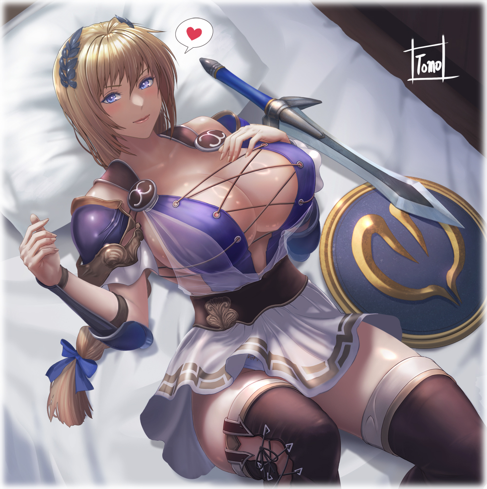 Hentai Eye – 1girl alluring bed big breasts blonde hair blue eyes cleavage long hair