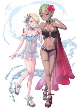 Hentai Eye – 1girl 1girl alluring ass ass cutout big breasts bikini blonde and teal hair