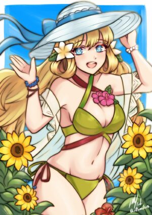 Hentai Eye – 1girl 1girl :d alluring bare shoulders bikini blonde hair blue eyes cleavage