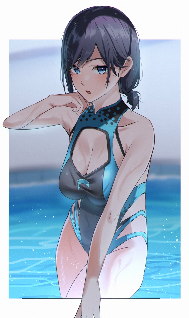 Hentai Eye – 1girl alluring big breasts bikini black and blue hair blue eyes cleavage