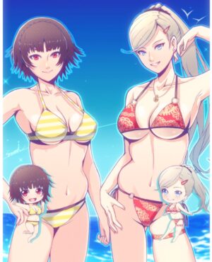 Hentai Eye – 1girl 2 girls 2boys ann takamaki atlus bikini black border blonde hair blue